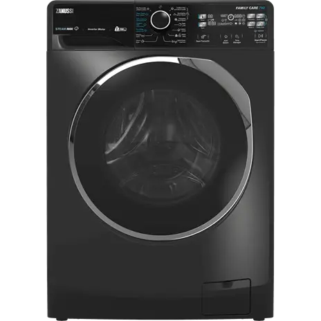 Zanussi Front Load Washing Machine - 7 kg - 18 Programs - Inverter - 1200 RPM - Digital Display - Steam - Black -ZWF7221BL7